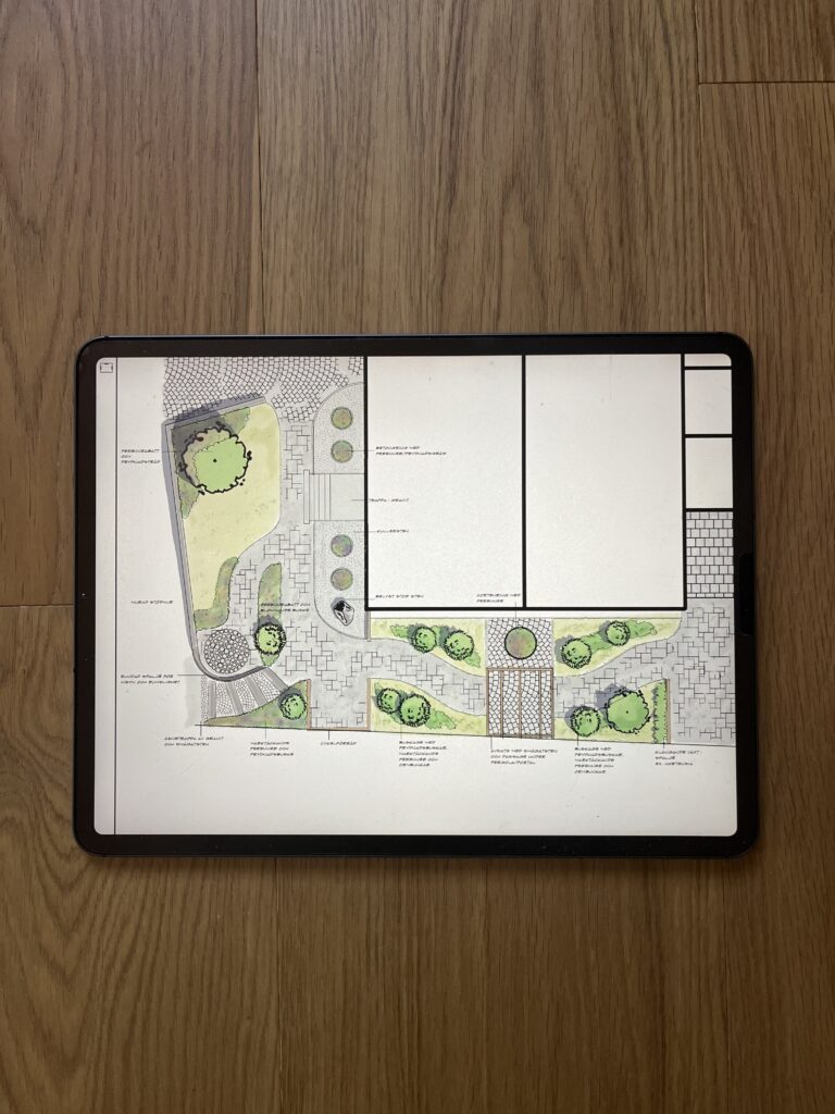 Utöver konsultationen så ingår en skalenlig idéskiss över trädgården som gör det enkelt när man ska sätta spaden i backen!